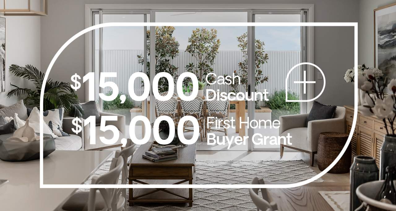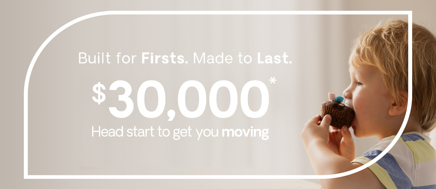 Combine that with the $15,000* First Home Buyer Grant and that's a $30,000* head start to get you moving into your first home sooner.