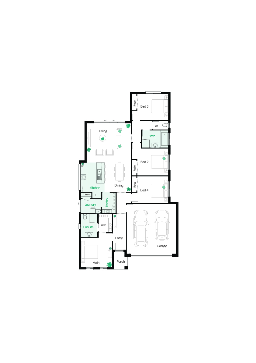• R4.1 insulation to ceilings (including garage)