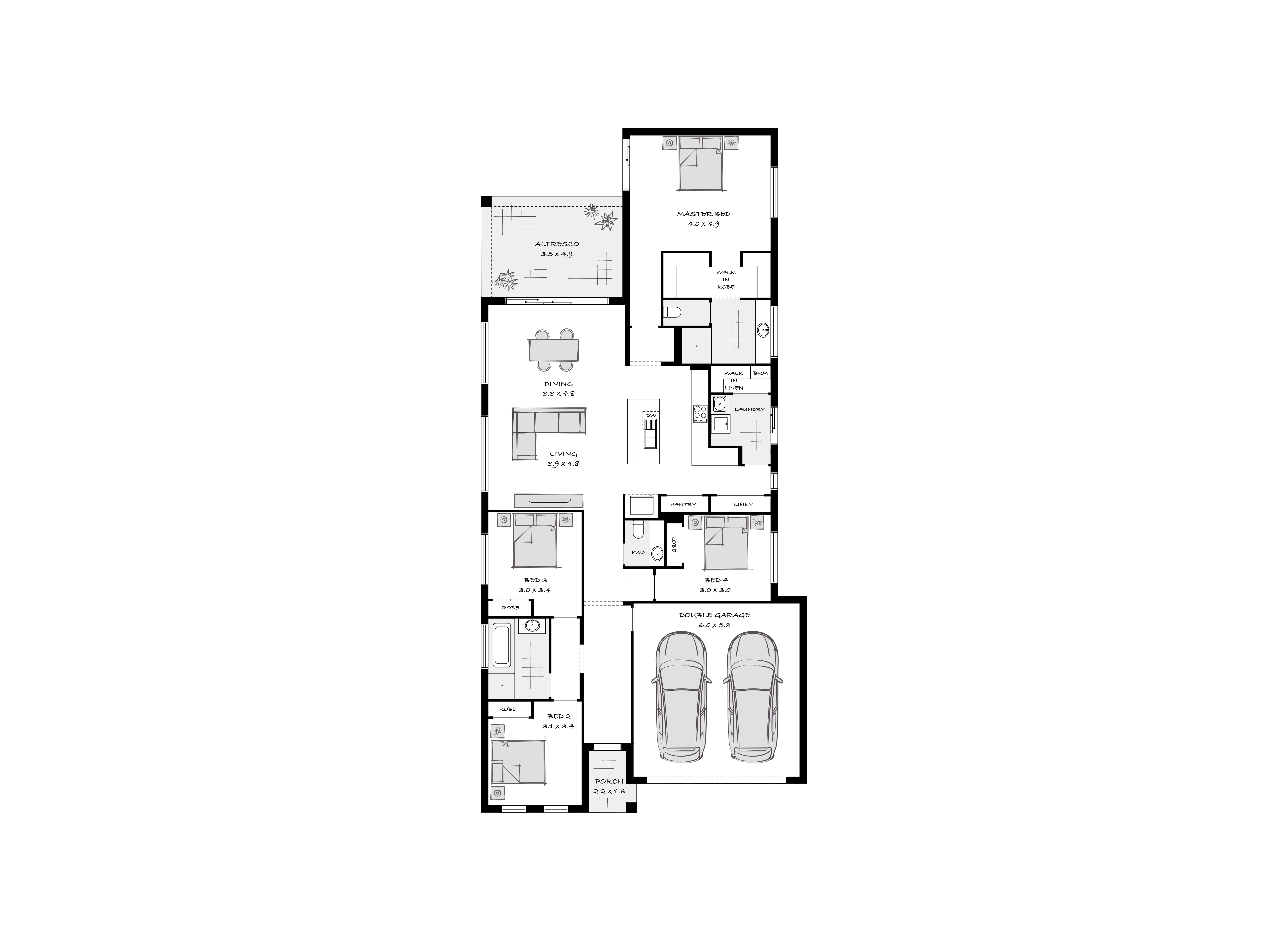 The floorplan represented in this house and land package is for illustration purposes only and should be used as a guide. Additional Mandatory National Construction Code 2022 (NCC 2022) amendments may be required to the plan to comply. Please speak to the Building Consultant for further information.