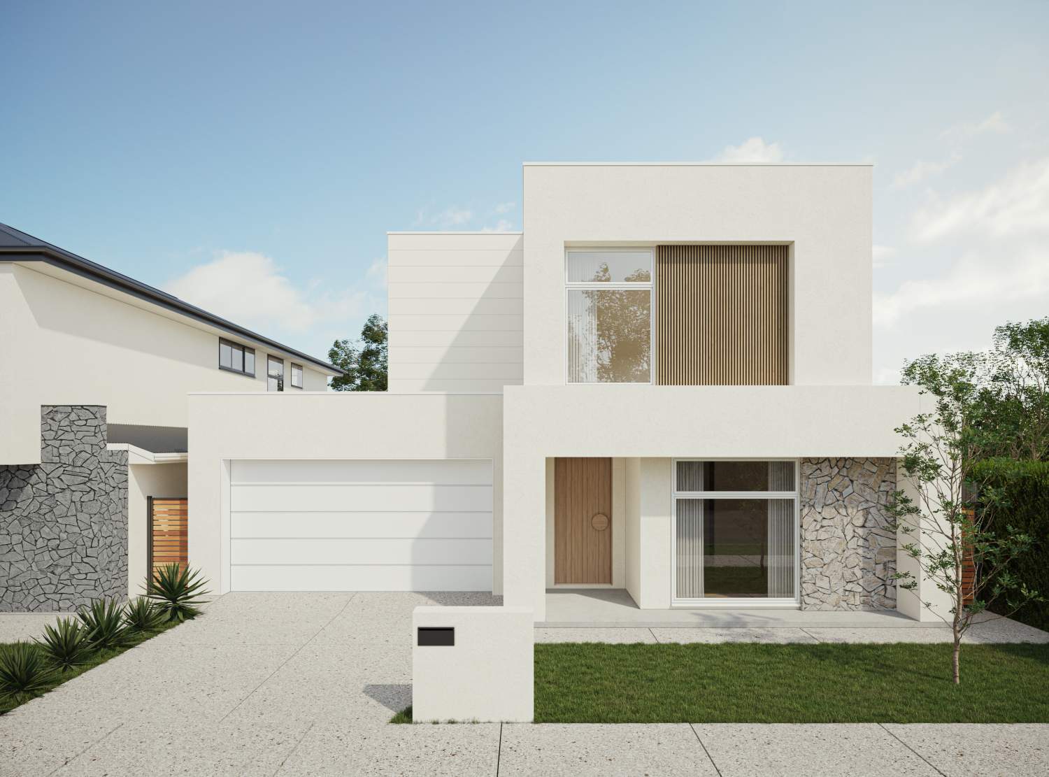 • Landscaping, letterbox fencing, stormwater, RWT and exposed aggregate driveway and paths